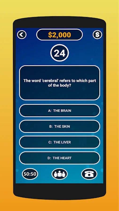 The game consists of 12 questions. The level of difficulty increases with each question, and so does your potential wealth. For example, if you answer the first question correctly your prize money goes from $500 to $1000. As you work your way through the questions by supplying the correct answers your riches grow exponentially until you reach the final question - and if you answer it correctly you will succeed in making a million dollars.