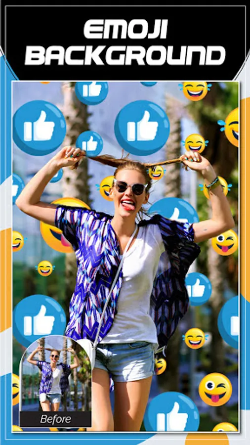 Background changer pro app is very fast and easy to use app to create amazing emojis background photos. Emoji photo editor app has many exciting features like you can adjust opacity and size of emojis and also give a blurry look of your emoji background. You can change emoji's position by using the shuffle feature. Emoji background app has funny stickers, animal, heart, neon and mix emojis.
