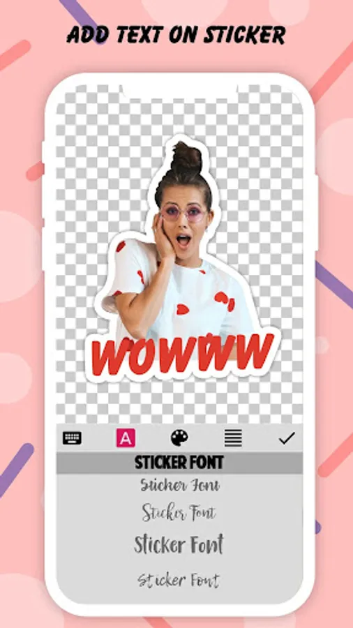 ⭐ Use the Text option to write anything on the sticker with multiples fonts styles and colors options, manage opacity of text and also manage horizontal gravity of text to make it look amazing.