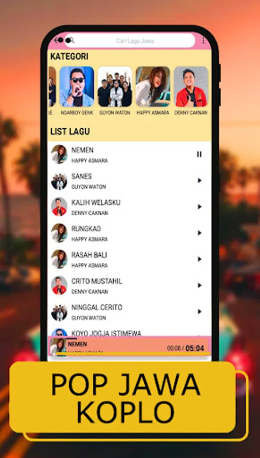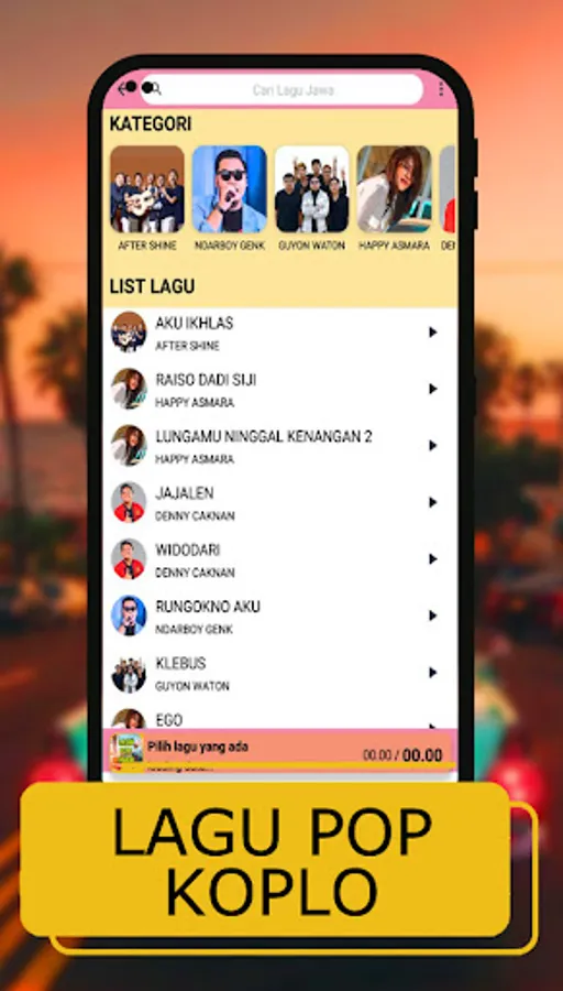 Javanese Pop Songs 2023 Offline is an application that presents the latest Koplo Javanese pop songs from several singers. The Javanese Koplo pop mp3 application is equipped with an automatic play feature which allows users to play Koplo 2023 pop songs continuously without having to select songs one by one.