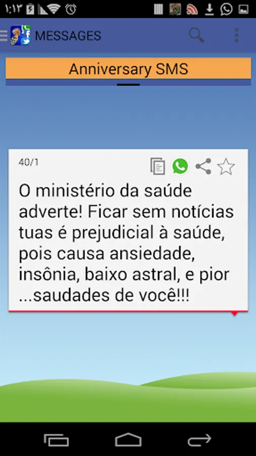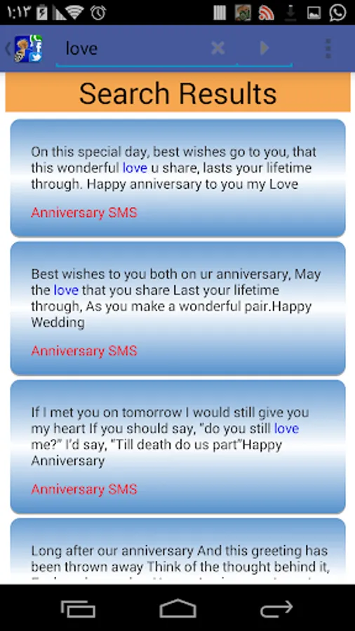 -Largest Collection of SMS on Android application for you to text message from your cellphone.