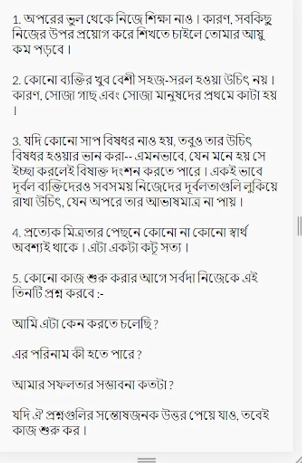 যদি কোনো সাপ বিষধর নাও হয়, তবুও তার উচিৎ বিষধর হওয়ার ভান করা-- এমনভাবে, যেন মনে হয় সে ইচ্ছা করলেই বিষাক্ত দংশন করতে পারে । একই ভাবে দূর্বল ব্যক্তিদেরও সবসময় নিজেদের দূর্বলতাগুলি লুকিয়ে রাখা উচিৎ, যেন অপরে তার আভাষমাত্র না পায় ।