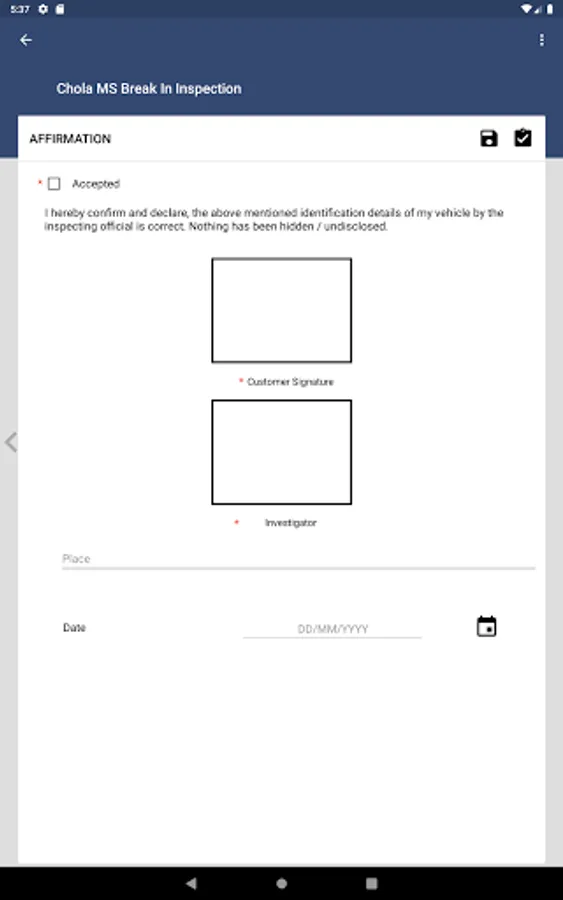 Chola MS Break-in is a vehicle inspection and special approvals app wherein the inspection can be done and specials approvals for DTD, School bus can be taken by Chola MS partners or employees by downloading this app.