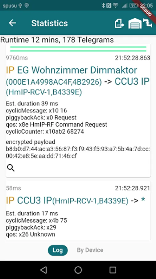 The APP helps you finds out what your Homematic or Homematic IP devices are doing. No connection to some devices? Your duty cycle reaches 100% from time to time? Bubbling devices? Find out what's going on at 868MHz.