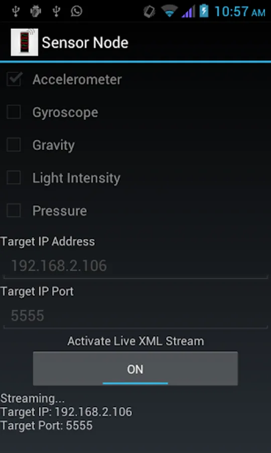 - Stream live data from phone to PC through UDP in xml format