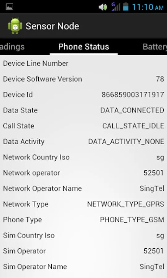 - View data from sensors, phone status as well as battery status