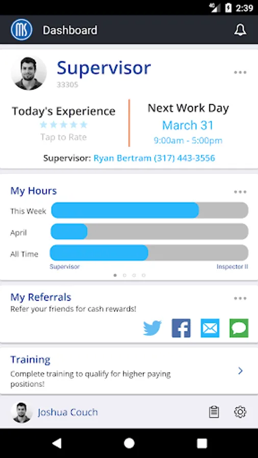 Join the 10,000+ MS Companies employees who are enjoying the flexibility of an hourly career. Employee Engagement App allows contracted employees to manage their work life. Whether you need to apply for work, track your earnings, or refer a friend for some extra cash, Employee Engagement App puts all your tasks at the tip of your fingers.