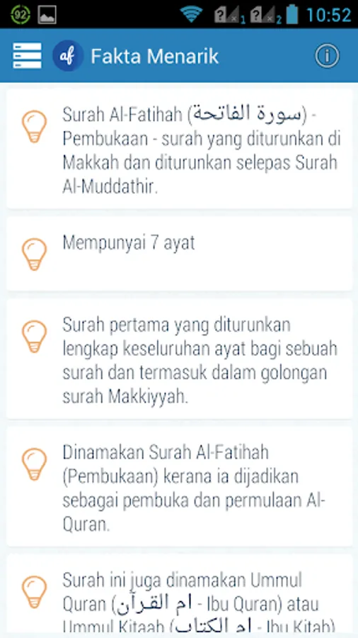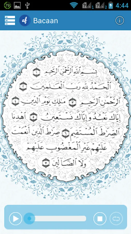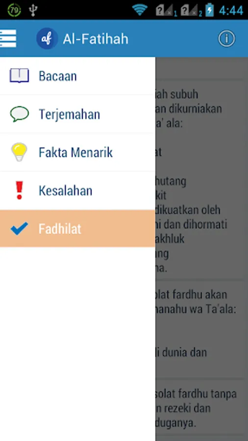 Al-Fatihah merupakan aplikasi mobile yang dibangunkan oleh pihak MSDDI untuk semua lapisan umat Islam dan juga pengguna yang ingin memperbetulkan bacaan surah Al-Fatihah masing-masing. Aplikasi ini mempunyai modul seperti terjemahan mengikut ayat serta fadhilat membaca Al-Fatihah dan juga senarai kesilapan yang sering dilakukan ketika membaca Al-Fatihah.