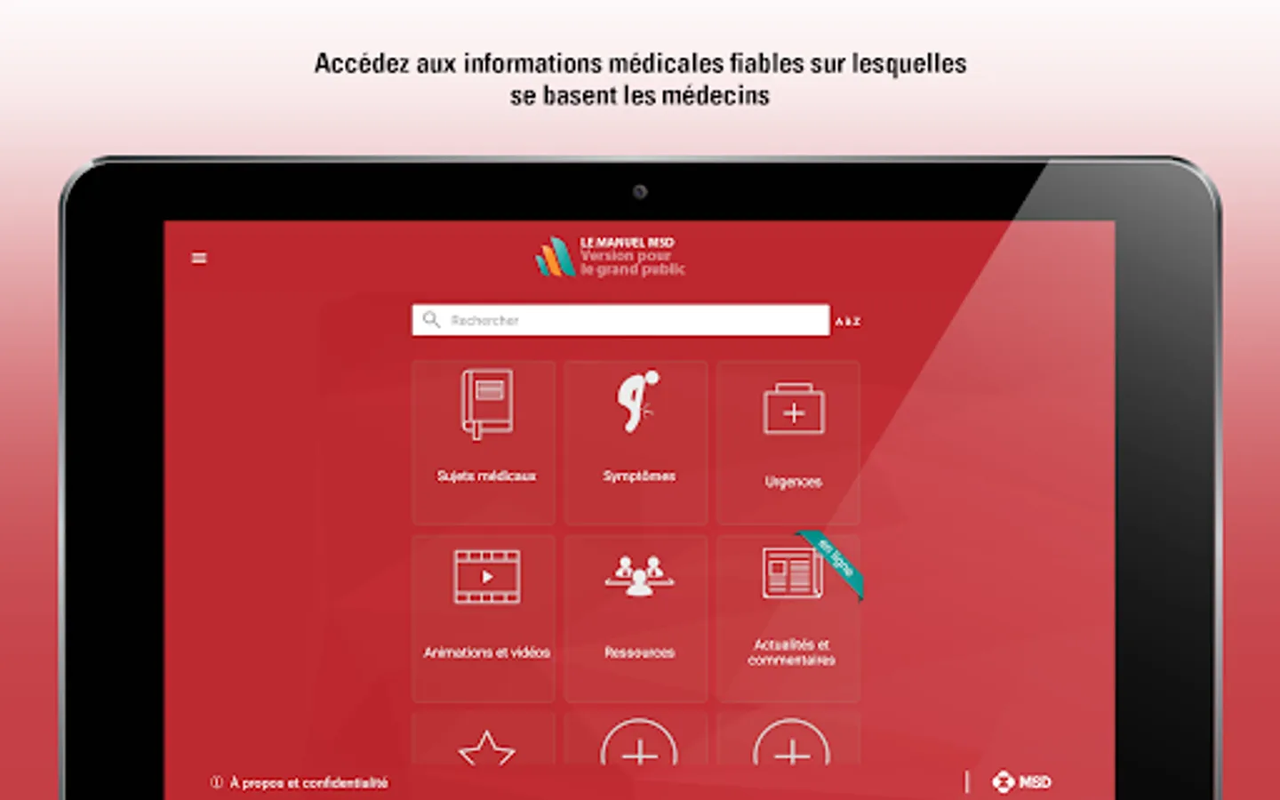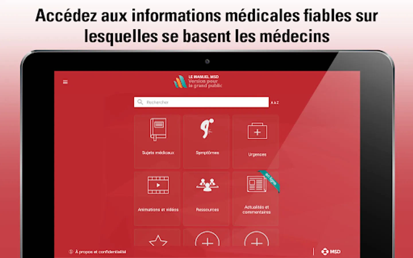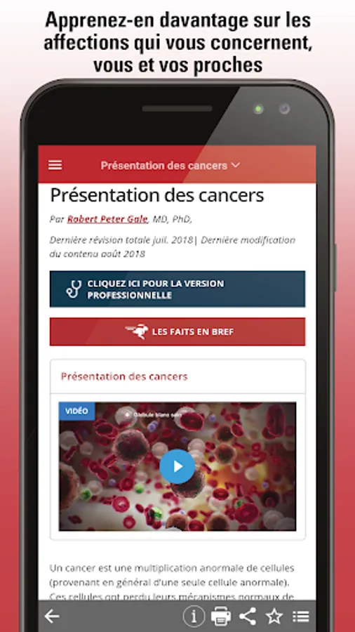 Designed especially for patients, their loved ones and caregivers, this version of the MSD Manuals medical information app is for you. With new features and enhancements, the MSD Manuals Consumer App is written in everyday language. This version for the general public offers clear and practical information on thousands of pathologies, including their symptoms and how doctors diagnose and treat these pathologies.