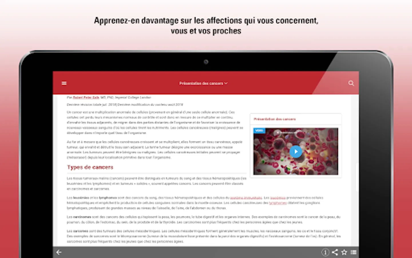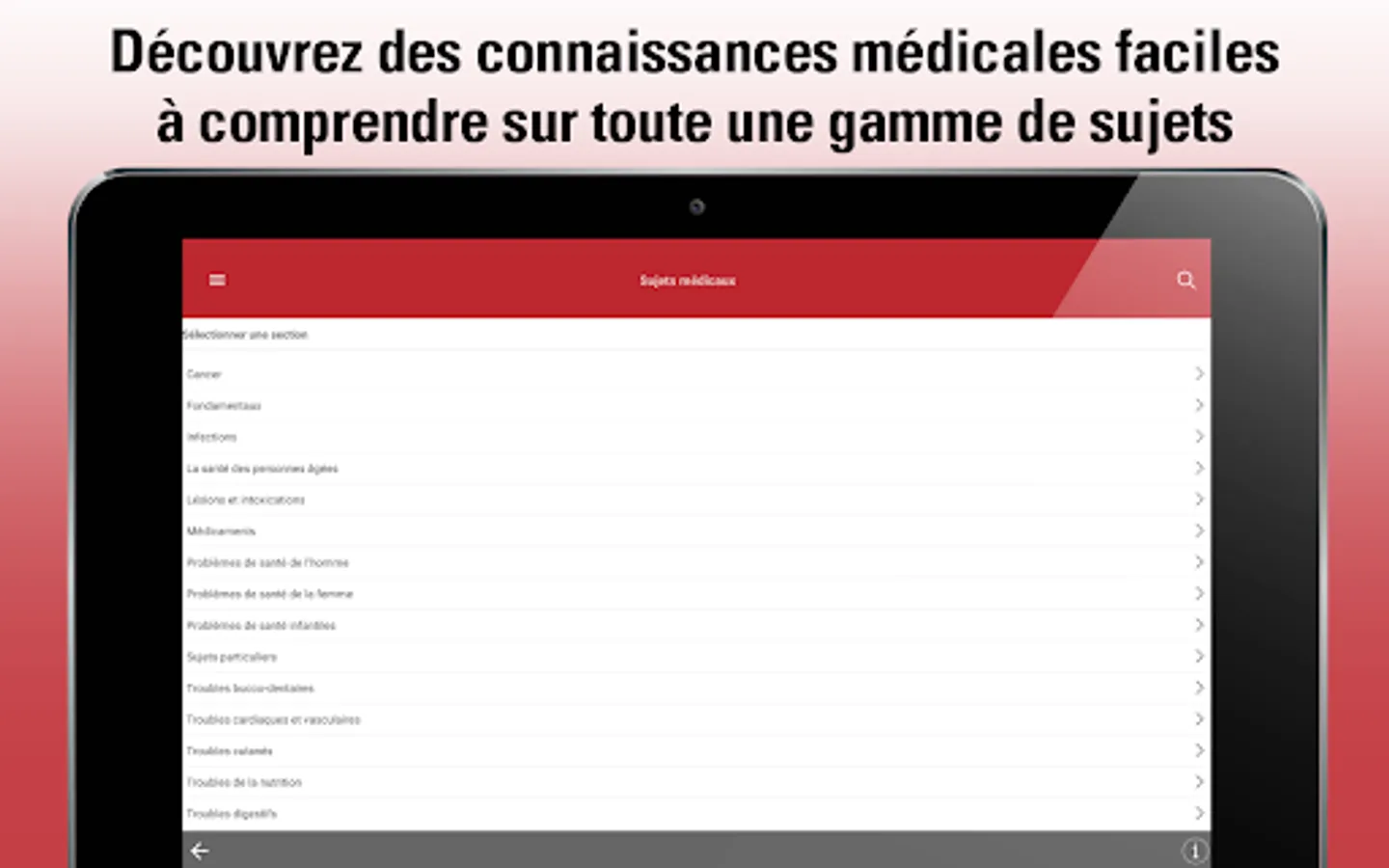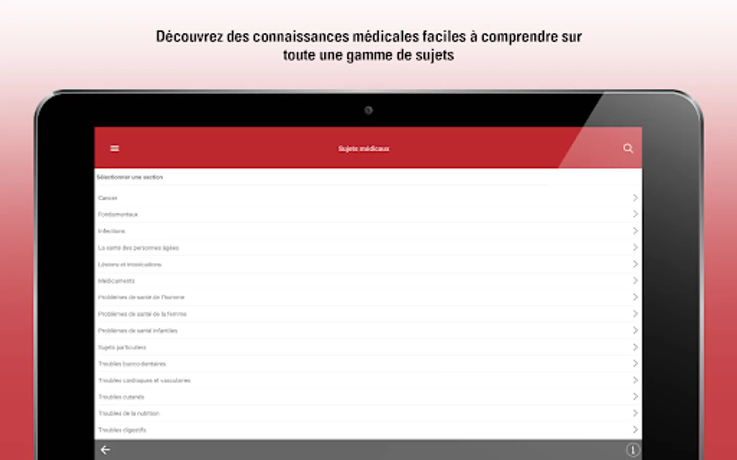 Designed especially for patients, their loved ones and caregivers, this version of the MSD Manuals medical information app is for you. With new features and enhancements, the MSD Manuals Consumer App is written in everyday language. This version for the general public offers clear and practical information on thousands of pathologies, including their symptoms and how doctors diagnose and treat these pathologies.