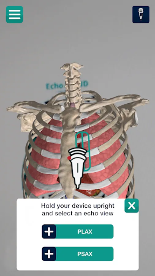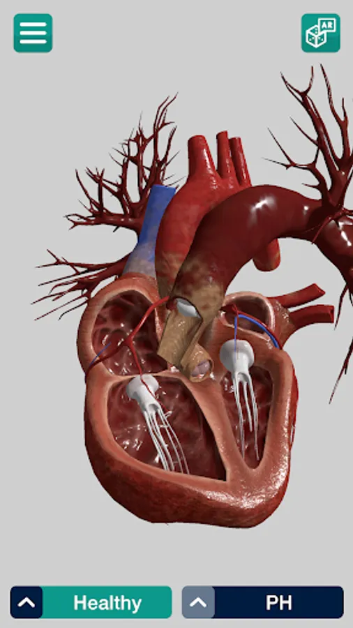 Echo ARt 3D utilises innovative 3D interactive cardiac models to show users the relevant anatomy and structural pathology in PH. The app also features an augmented reality (AR) module which enables users to simulate a transthoracic echocardiology scan with their mobile device. Users can navigate over AR models of the heart and thorax to identify echocardiology windows, which will in turn reveal the corresponding echocardiology scan videos.