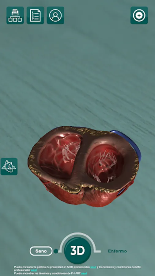If you are not a healthcare professional, you will only have access to the normal anatomy of the RV, while if you are a healthcare professional, to access RV remodeling, you will have to pre-register for free with MSD Professionals within the app itself.