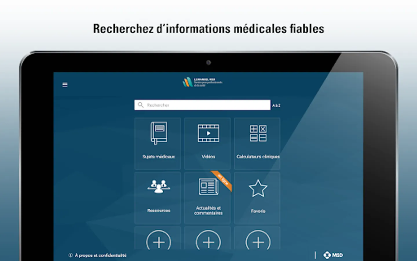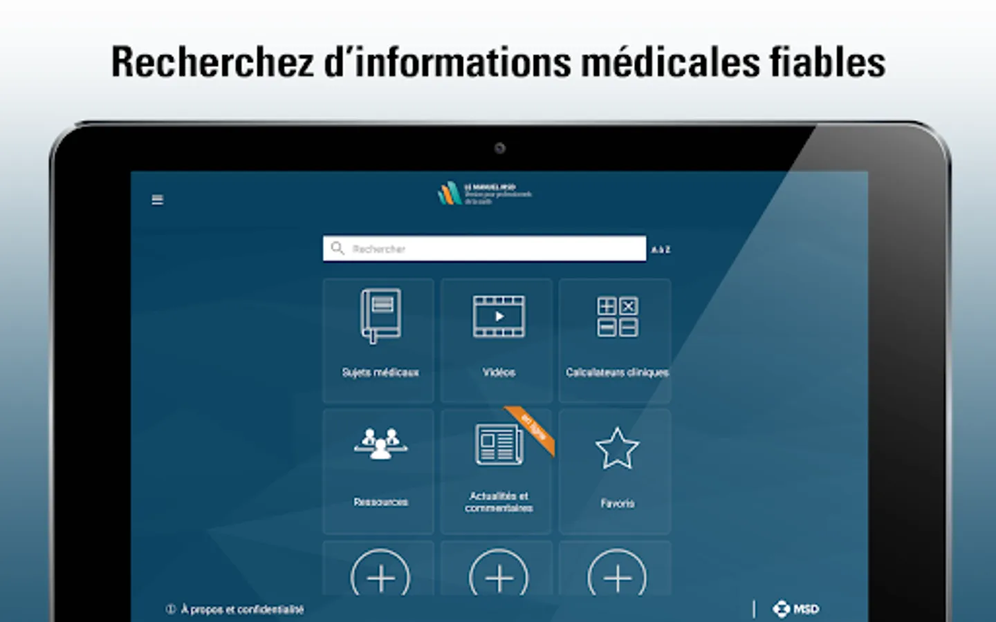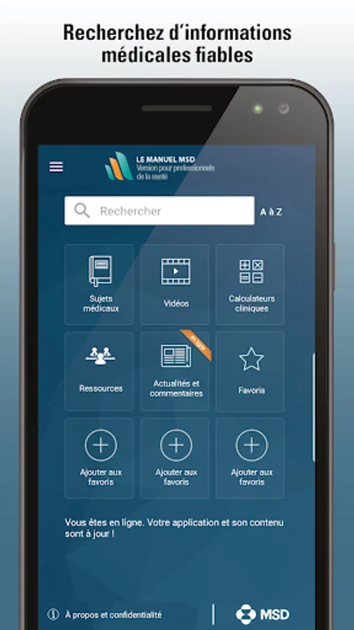 The MSD Manual app, version for healthcare professionals, offers: