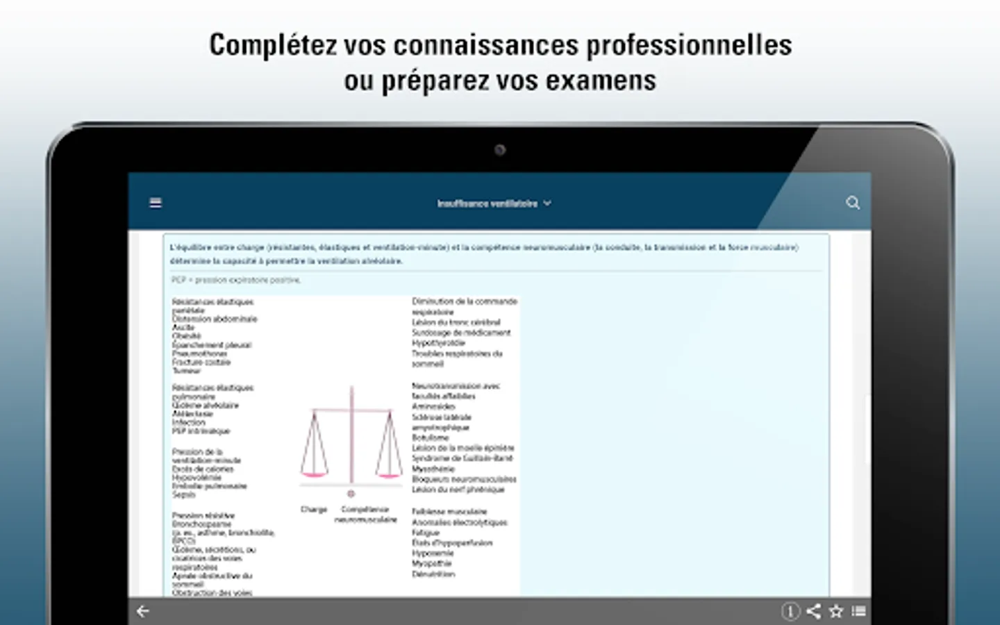 The MSD Manual app, version for healthcare professionals, provides healthcare providers, nurses and students with clear and practical information on thousands of pathologies in major medical and surgical specialties. It discusses etiology, pathophysiology, prognosis, and options for assessment and treatment.