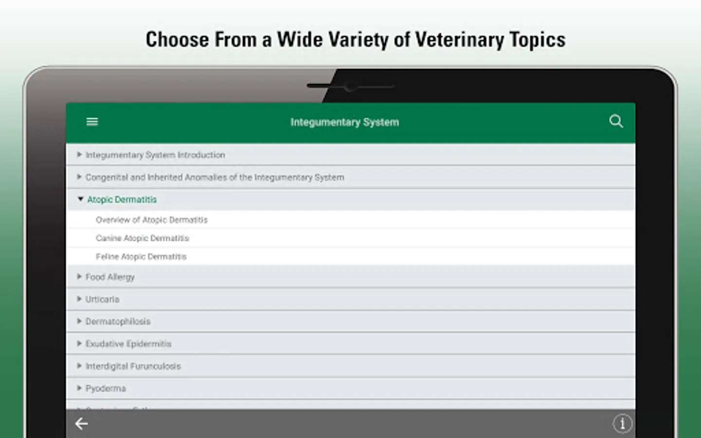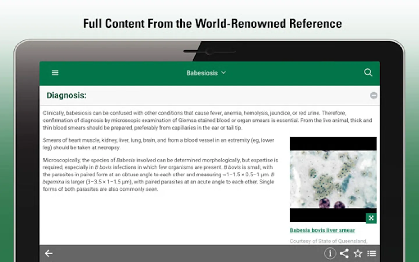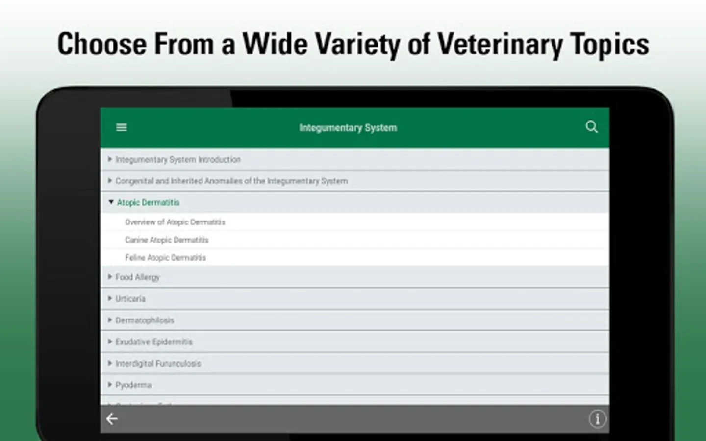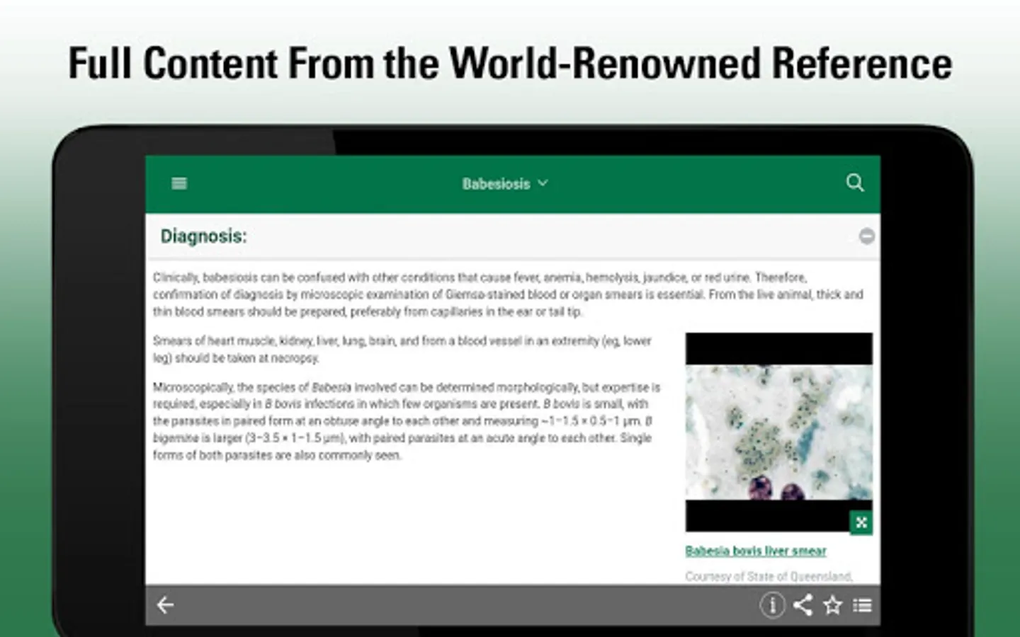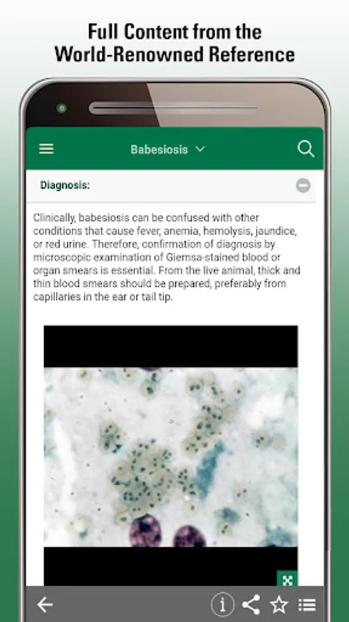 This app provides veterinarians, students and other animal health professionals with clear, practical explanations of thousands of conditions across all body systems. It covers etiology, pathophysiology, and options for diagnosis and treatment.