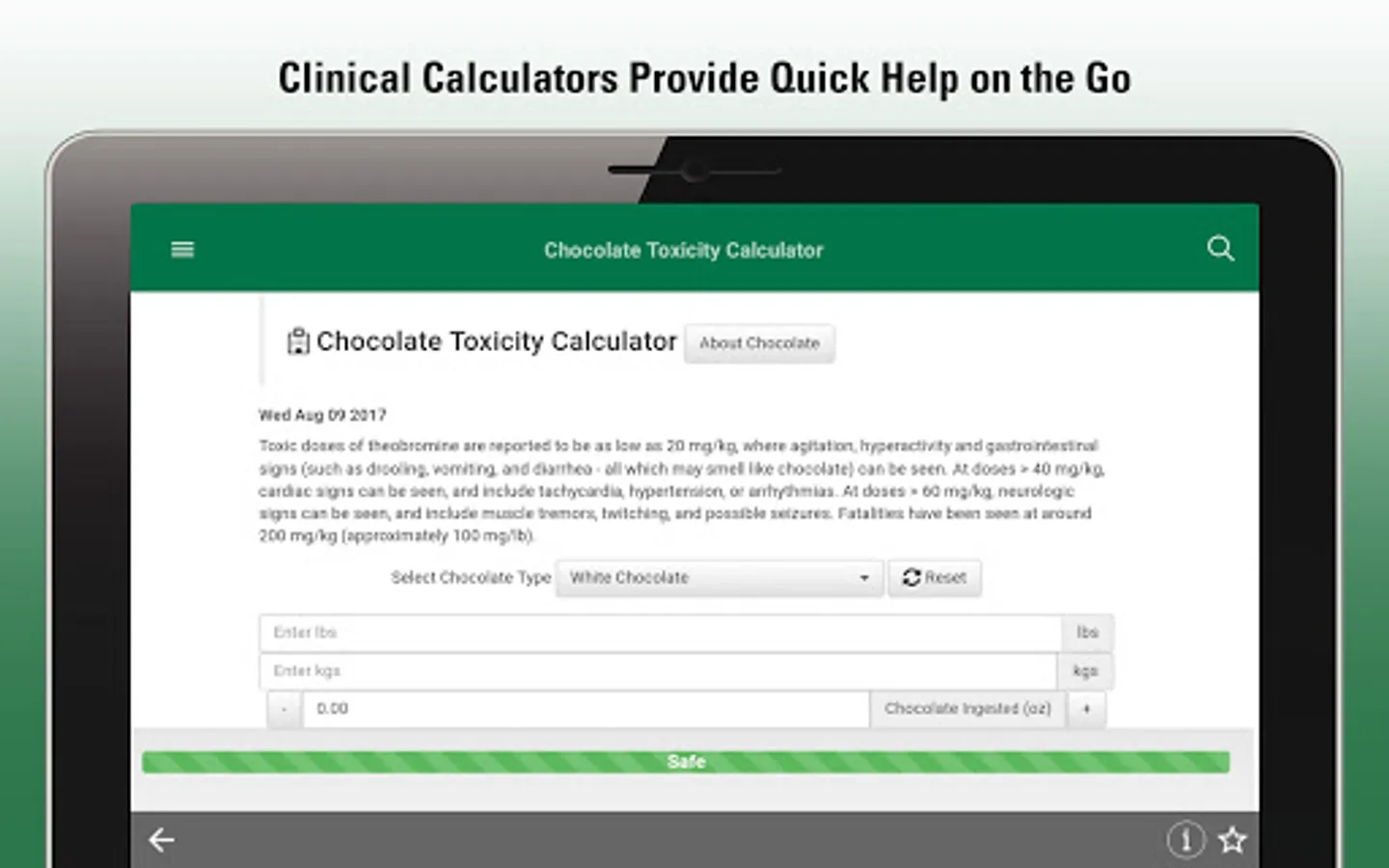 This mobile application is intended for Veterinary Professionals.