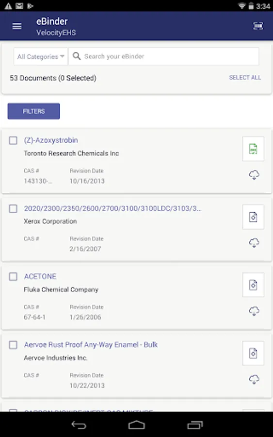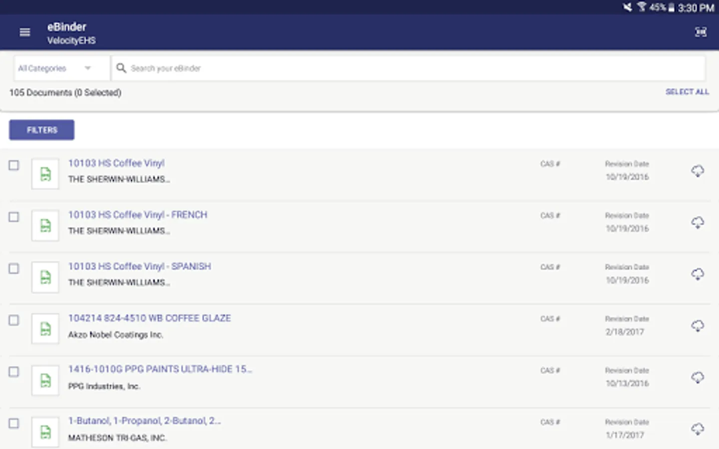 • Automatically downloads new versions of safety data sheets as they appear in your eBinder