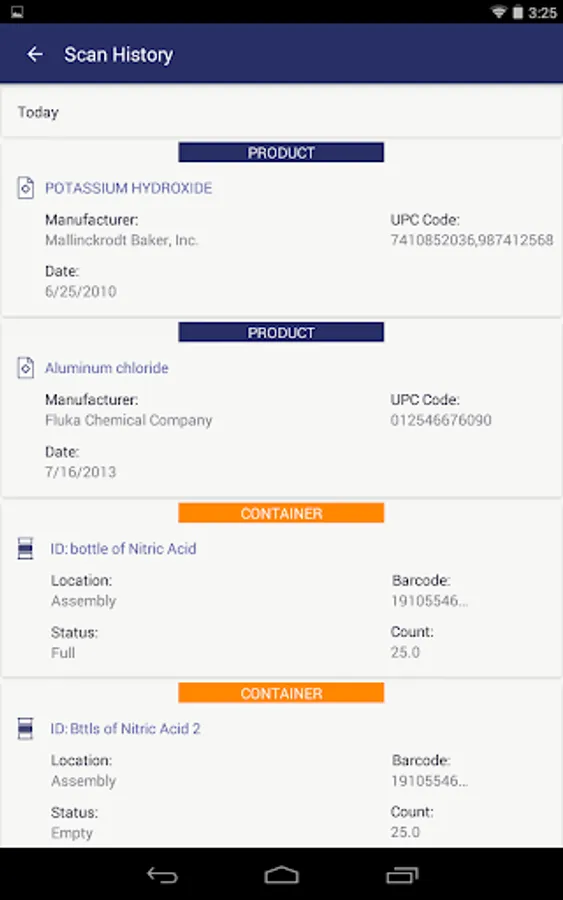 Search and filter your account’s eBinder for quick access to the chemical safety information you need while you’re at work, whether that’s on- or off-site. Use your device’s camera to scan a barcode or QR Code label and retrieve information about the containers in your chemical inventory. Search the MSDSonline database to find an SDS that is not already in your eBinder. Use the app to edit the status of your containers, or move them throughout your organization. All changes automatically update the inventory in your online account. Scan UPC Codes associated with your products to retrieve product information and the product’s safety data sheet.