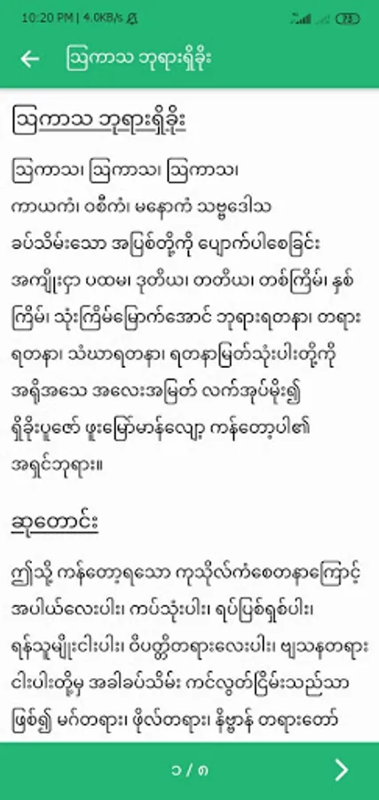 ဤ App ၏ ရည်ရွယ်ချက် မှာ မည်သည့် နေရာ၊ မည်သည့်အချိန် တွင်မဆို တရားတော်များကို အလွယ်တကူ ရွတ်ဖတ်ပူဇော်နိုင်ရန် ဖြစ်ပါသည်။ Offline အဖြစ် ပြုလုပ်ထားသောကြောင့် Internet Connection မရှိလျှင်လည်း အသုံးပြုလို့ရပါသည်။ ဗုဒ္ဓဘာသာဝင်တိုင်း တရားဒေသနာတော်များ ရွတ်ဖတ်ပူဇော်သည့် အခါ အဆင်ပြေမူရှိအောင် စုစည်းဖော်ပြထားပါသည်။ မြန်မာ အသံထွက်ပုံ နှင့် အနက်အဓိပ္ပါယ် များပါ ဖော်ပြထားပါသည်။ တရားဒေသနာတော်များ ကို ရွတ်ဖတ်ပူဇော်ခြင်းဖြင့် ဘေးအန္တရာယ်များ ကင်းဝေးကြပြီး စိတ်၏ချမ်းသာခြင်း၊ ကိုယ်၏ကျန်းမာခြင်း များပြည့်စုံကြပါစေရန် ဆုမွန်ကောင်း တောင်းအပ်ပါသည်။