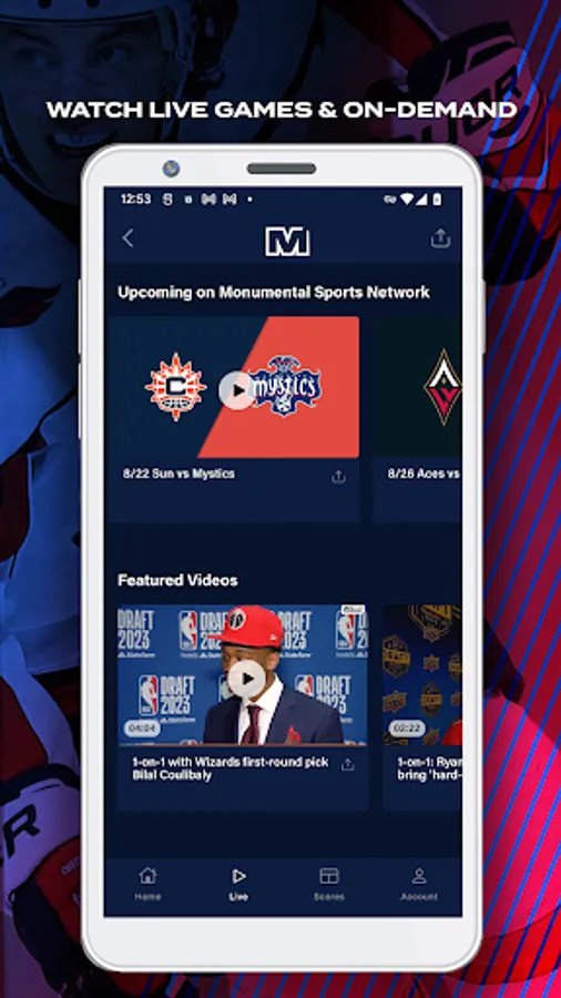 This is your digital home for everything Monumental Sports Network - Washington Capitals, Wizards, Mystics, and more. Stream live games, get score updates, track stats, experience the games from multiple camera angles, and so much more at any time on any device.