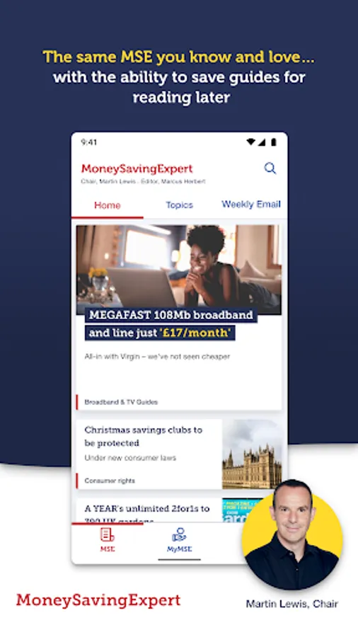 The MoneySavingExpert app puts the power of MSE and Martin Lewis in your pocket, with on-the-go access to all MSE's guides, news and blogs.
