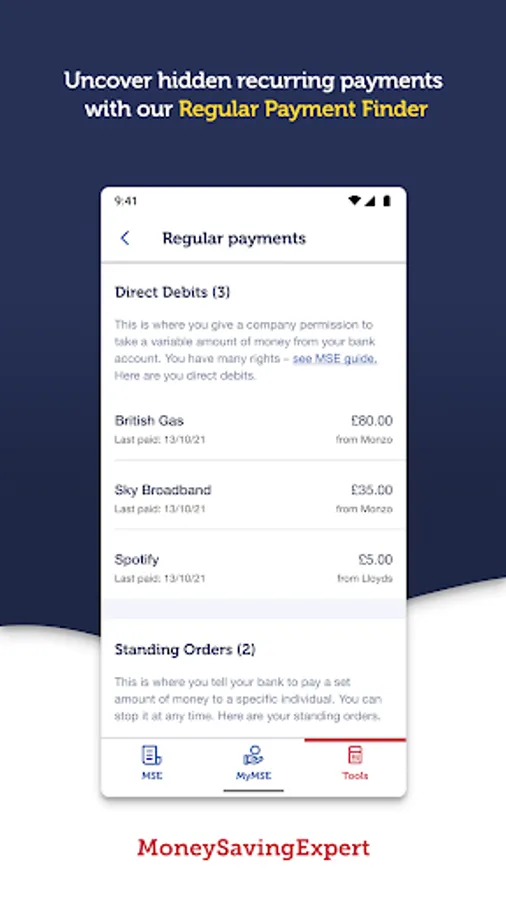 You can also try out the early versions of new app-exclusive features by connecting your bank account to the MSE app. Our new Regular Payments Finder tool analyses your recurring payments and helps you to weed out the money wasters, while MyMSE looks at your spending and what interests you to give you daily directions and help you cut your bills.