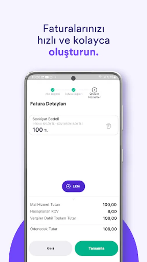 - Easily create your sales and purchase invoices.