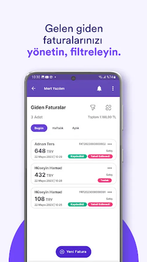 - You can print your invoices, make them official as e-invoice/e-archive, and share them with your customers in different formats.