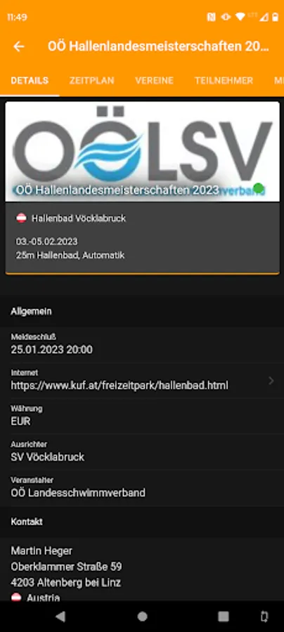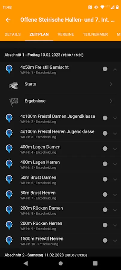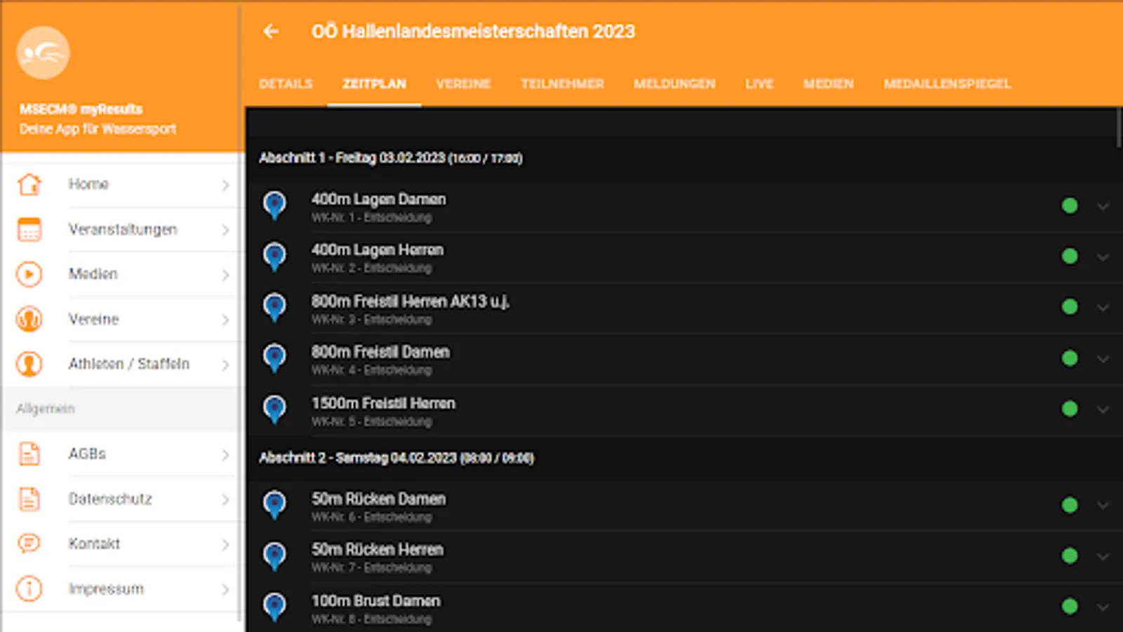 - Detailed event information including schedule and startlist information (including heat and lane assignment)