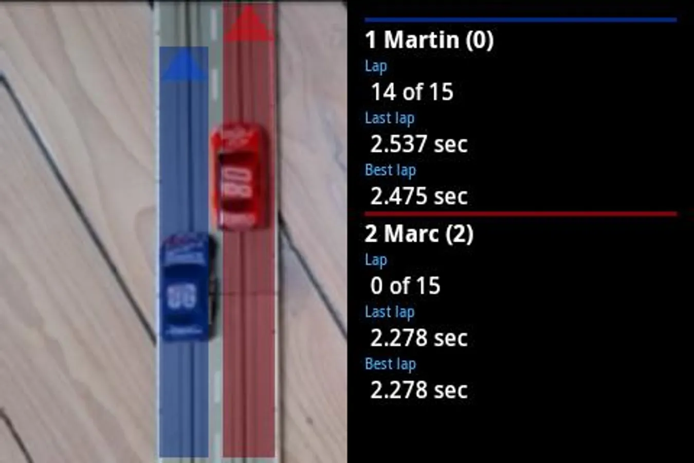 SlotCount is a lap counter for analog slotcar tracks (e.g. Carrera(tm), Ninco(tm), Scaletrix(tm)). The movements of the cars are detected by the smartphone camera, the laps and lap times are detected and displayed.