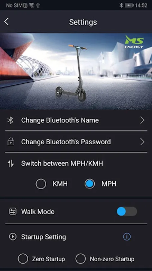 It is specially designed for MS Energy intelligent scooter N3-series. It can keep you informed of the driving status of the scooter at any time, such as viewing the vehicle's driving speed, current mileage, accumulated mileage, and remaining power; and it can be adjusted remotely through the "MS Energy" app. Unit switching, startup mode, cruise mode, etc.