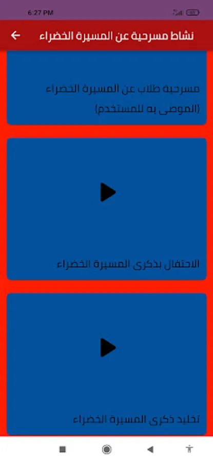 يمكنك التنقل بين أزرار تطبيق انشطة المسيرة الخضراء للاطفال بسهولة