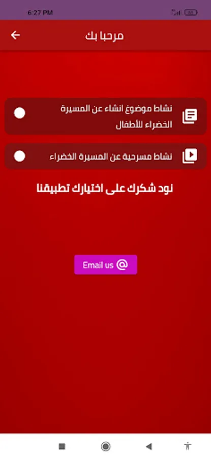 يشرفنا انضمامك لتطبيق انشطة المسيرة الخضراء للاطفال