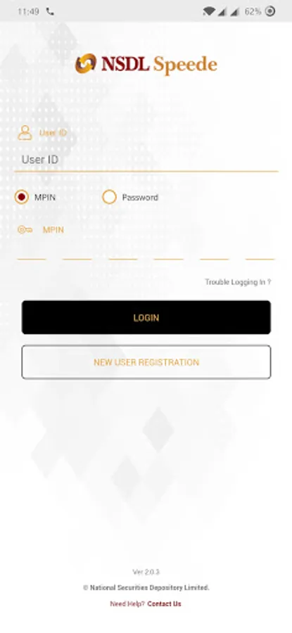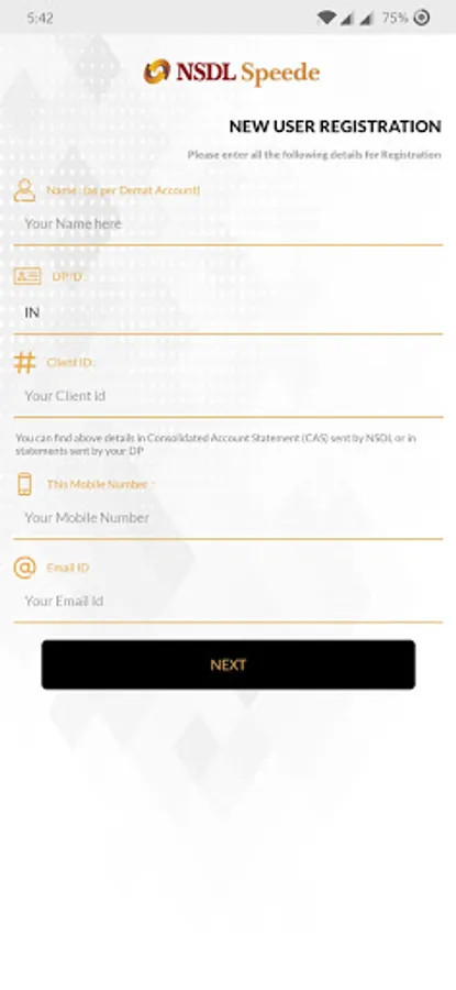 For online registration, follow simple steps after downloading App. If you are already a User of IDeAS or SPEEDe system of NSDL, the same credentials (i.e. User ID and Password) will work.