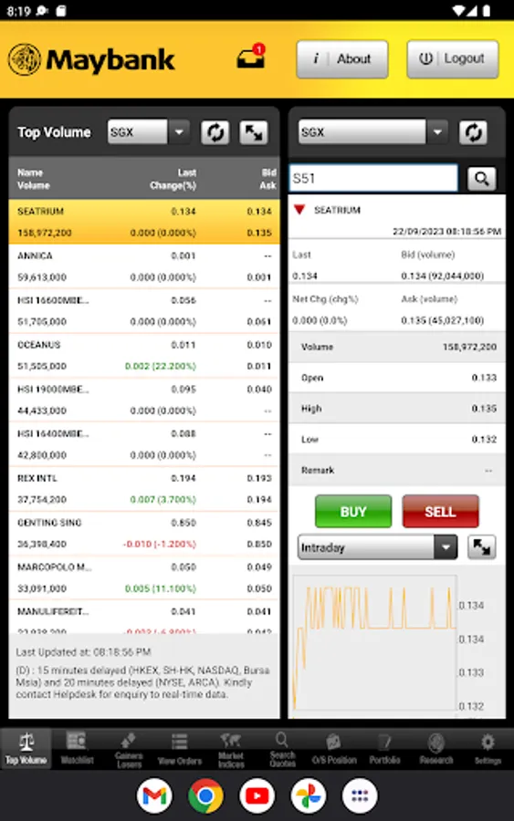 Maybank Trade Mobile’s Android Tablet app, lets you do the following: