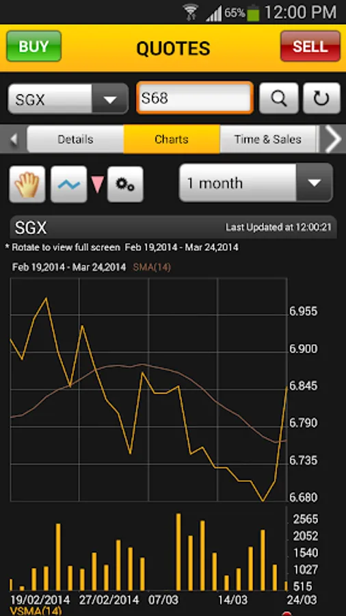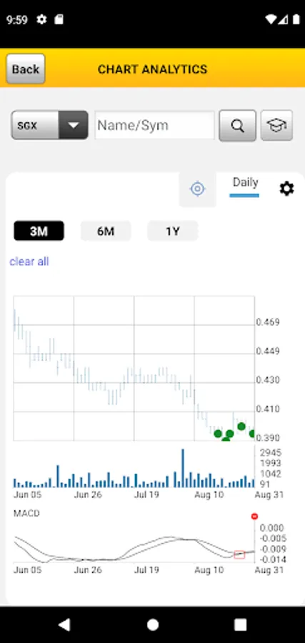 • Analyse stock price movements of stocks in the Singapore market and foreign markets. Choose from a variety of chart types such as Candlestick, Open-High-Low-Close (OHLC), Area and Line
