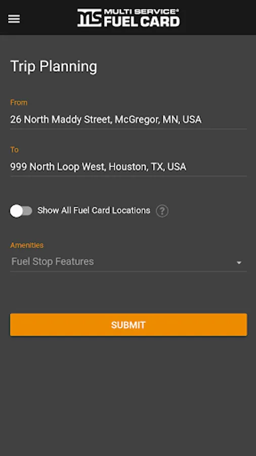 A state of the art mobile application powered by Multi Service Technology Solutions helps fleet operators manage their fuel cards right from their mobile device. Fleet Operators will enjoy visibility of card activity as well as getting InstaMoney(C) codes right from their mobile device. The drivers will have access to our more that 5000 merchant locations with the state of the art map features.