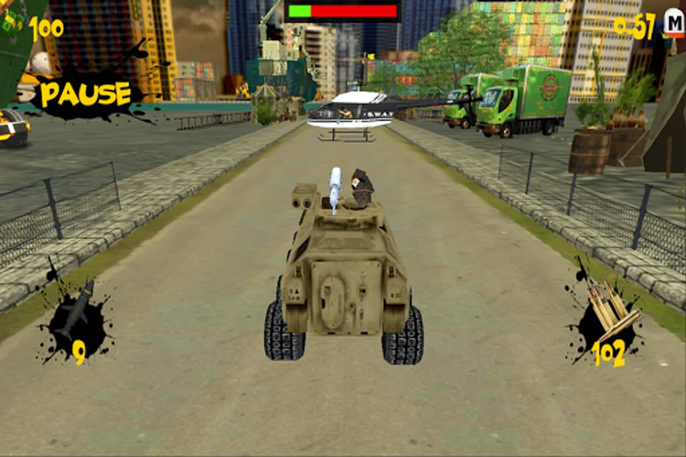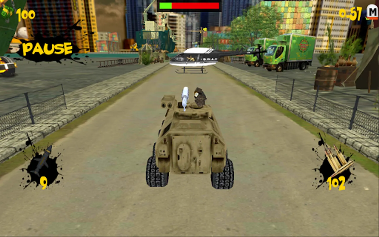 Take the 3D battle tank action onto your Android device. Dodge being hit by enemies and obstacles or shoot them with Sentry Gun, Rocket Launcher or Missile Launcher.