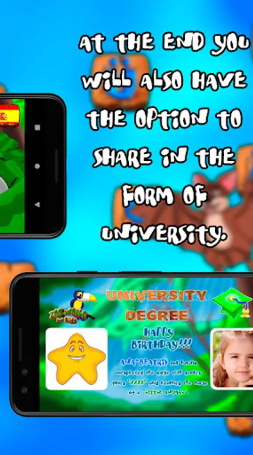 Assembling the animal's word, the game will display the sound and you will be able to generate a certificate with the new name learned, so share it with your family and friends.