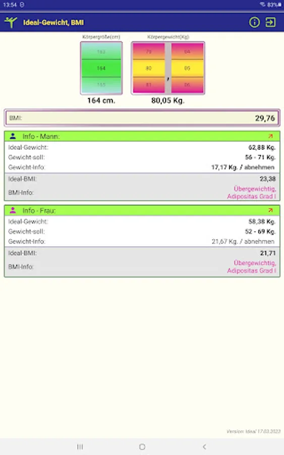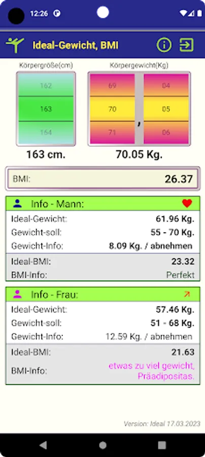 - ideal BMI,