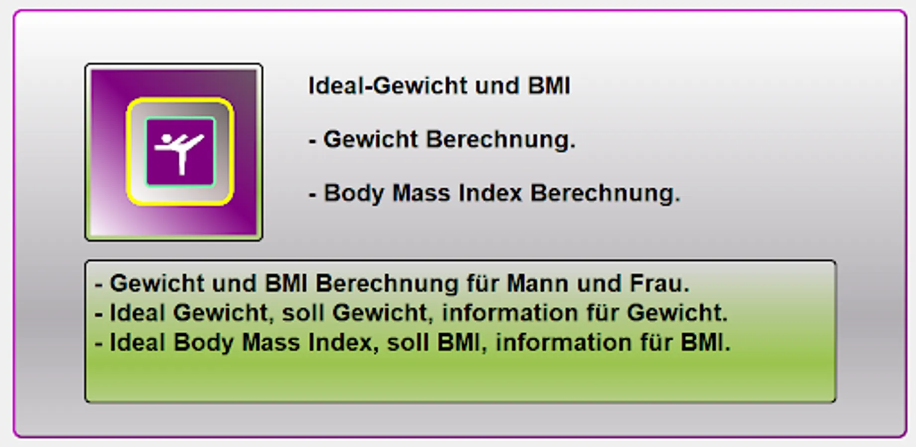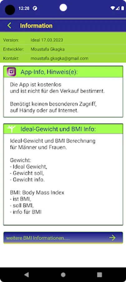 The app is for easy calculation of: