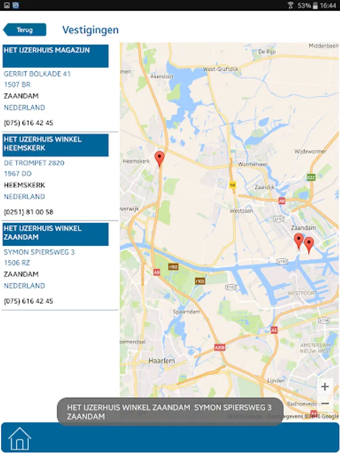 When sending orders can be selected from previously known delivery addresses, a new delivery address to be created or indicated that the order is picked up at an establishment. The addresses and contact details of the sites are available in the app.