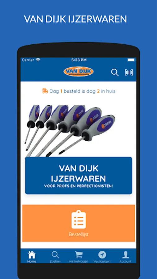 Using our Van Dijk app lets you wherever and whenever you want to order items and retrieve product information.