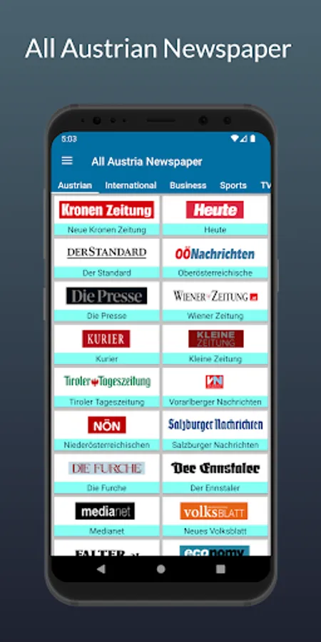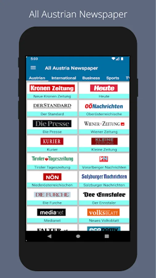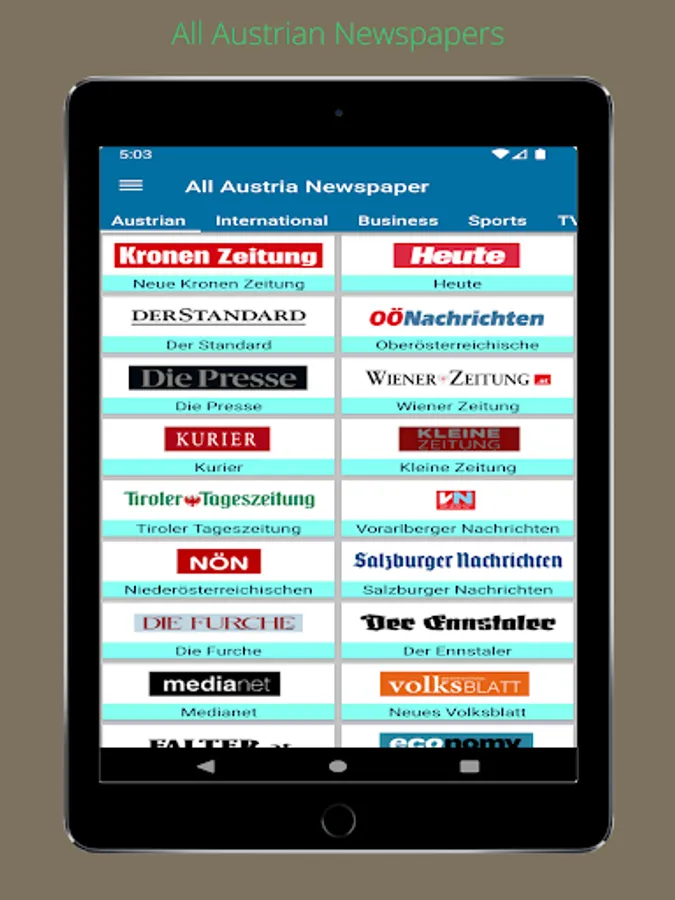 All Austrian Newspapers is a comprehensive android app that brings together all the major newspapers from Austria in one convenient location. With this app, users can easily access the latest news, articles, and opinions from some of the country's most respected publications, including Der Standard, Die Presse, Kurier, and many more. The app features a clean, user-friendly interface that makes it easy to navigate and find the stories that matter to you. It also offers customizable push notifications, so you never miss a breaking news story. Download this app to stay informed on the latest news in Austria, all newspaper in one place.