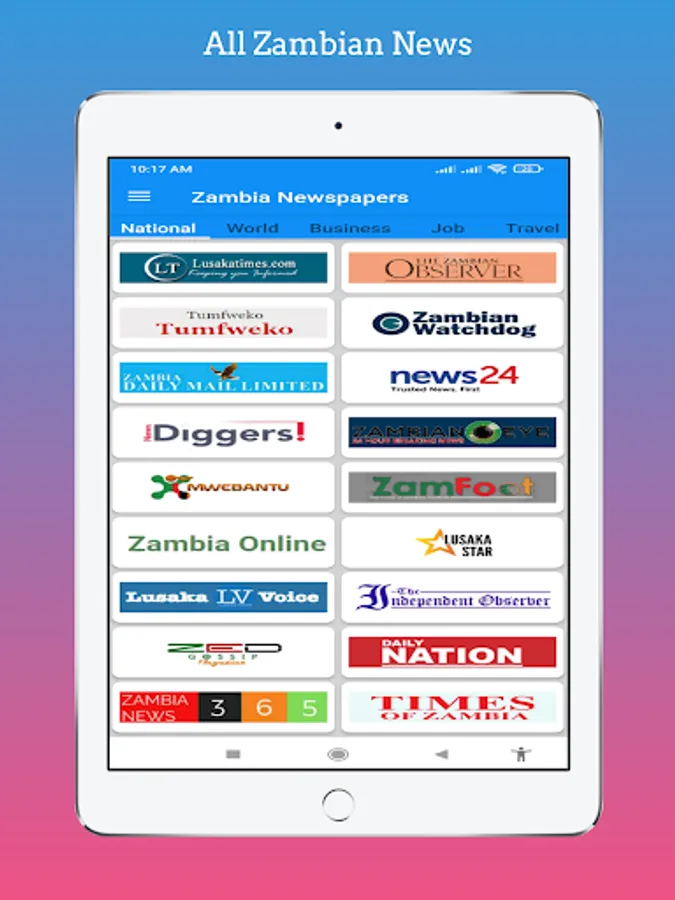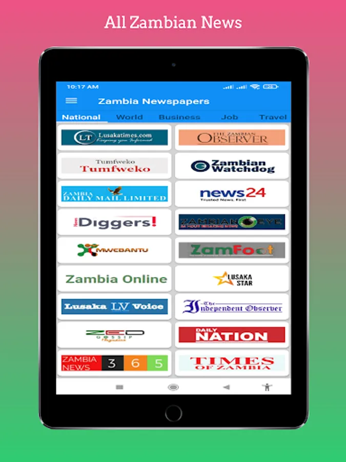 Zambian newspapers provides you that it contains all Zambian online national newspapers and local newspapers and also contains world newspapers.