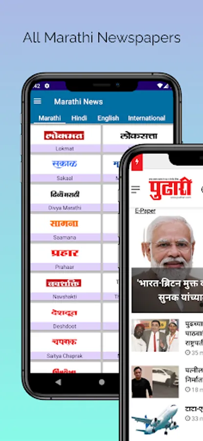 So you don't need a separate news app for each Marathi newspaper, you can just install this app for all Marathi newspapers. This app includes all Marathi Newspapers, Hindi Newspapers and English Newspapers.