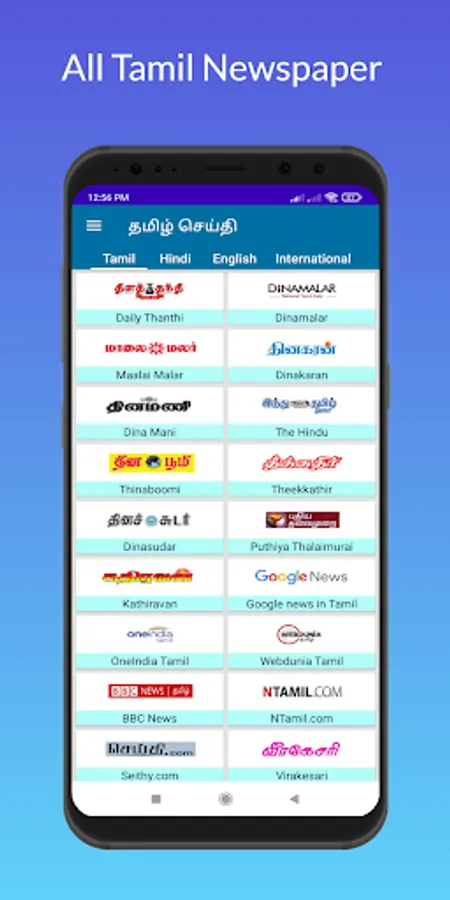 So you don't need seperate news app for each Tamil newspaper you can just install this app for all Indian Tamil newspapers. It is included all Indian Tamil newspapers, Hindi newspapers and English newspapers in this app.