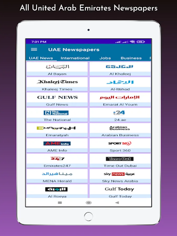 لست بحاجة إلى تطبيق أخبار منفصل لكل الصحف الإماراتية ، ما عليك سوى تثبيت هذا التطبيق لجميع صحف الإمارات العربية المتحدة. يتم تضمين جميع الصحف الإماراتية العربية والصحف الإنجليزية في هذا التطبيق