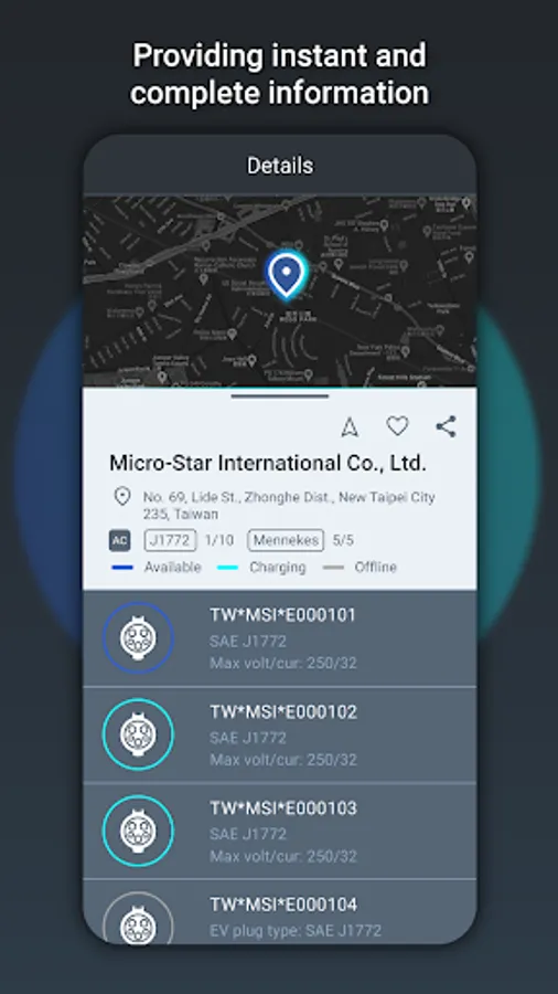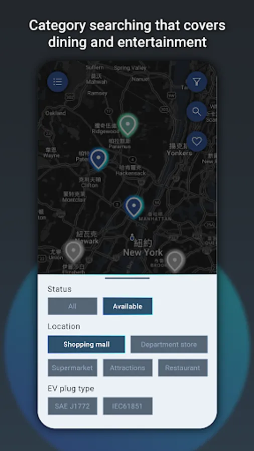 ● Map and categorized search function: Combining a charging station map with charging status, this App allows you quickly find the nearest charging station. You can charge your car while arranging for shopping, dining, or leisure activities.