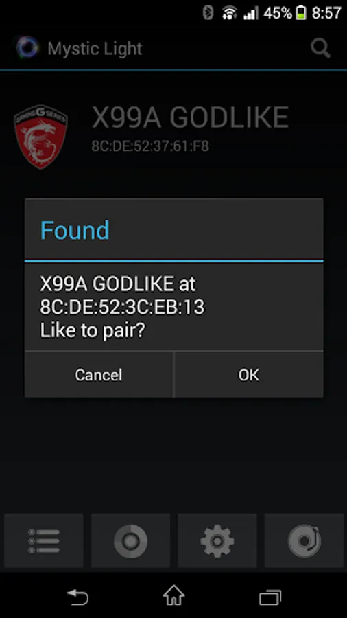 Mystic Light is easy to set up; While finding new Bluetooth-enabled LED devices in the area, Mystic Light will show the device ID to easily identify the MSI X99A GODLIKE GAMING motherboard or any other devices in range. Keep track of paired Bluetooth-enabled LED devices; Mystic Light allows you to change each connected device's name and icon to your preference using your smartphone or tablet.